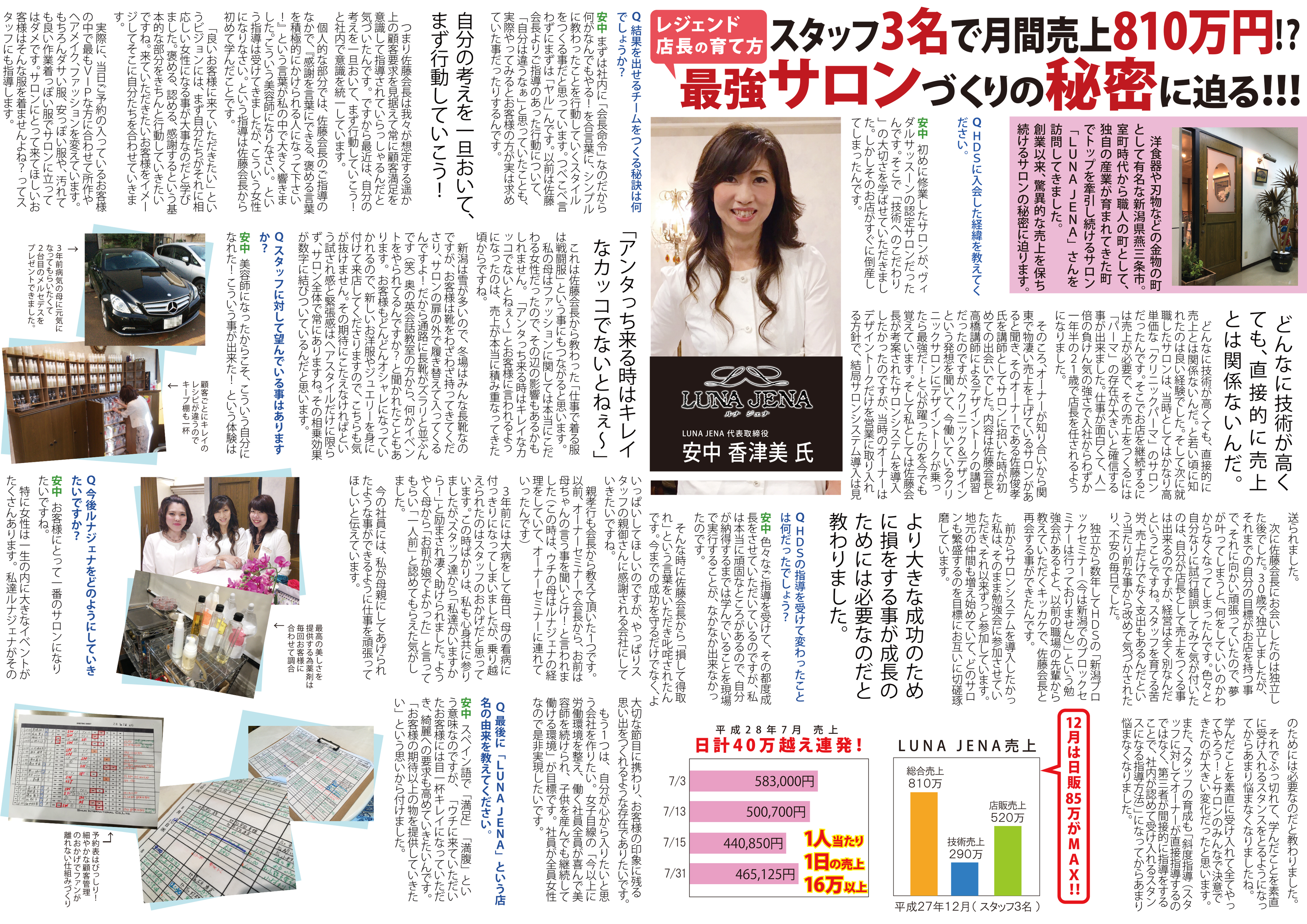 スタッフ3名で月間売上810万円!?